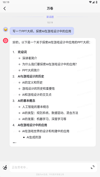 5、比如写一个ppt大纲等等,还可以让它帮你写一些其他的内容