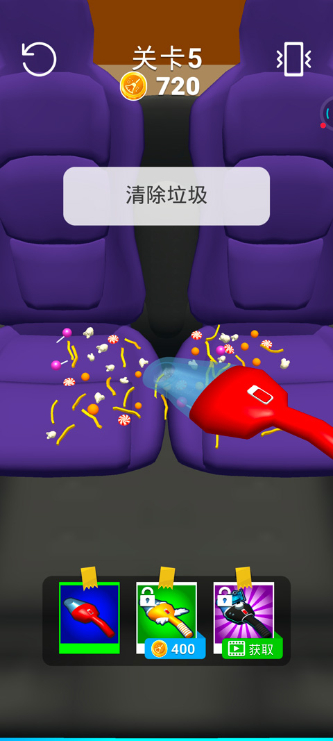 1、有着各种不同的道具可以去进行解锁使用,玩家可以随意的使用不同的道具去清理各种污渍,感受非常解压的玩法;