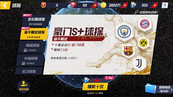 (4)豪门战役:累积球员情报,需准备1名S球员和1名S+/CL球员进行兑换。