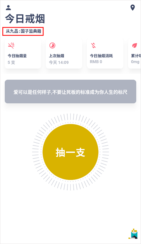 相信很多会抽烟的朋友都有过戒烟的想法,但一时半会又戒不掉怎么办?那么不妨试试这款今日抽烟打卡软件最新版,这是一款可以辅助大家戒烟的手机app,它能记录用户每日抽烟的数量以及距离上次抽烟的时间,其中关于你今日抽烟的消耗、累计吸入的焦油以及累计抽烟的数量,全都有详细的统计数量,并且还可以很直观的显示你近期抽烟的消耗和累计花费的钱数等等,帮助你严格控制自己的吸烟数量。