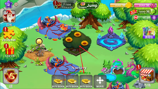 5、点击游戏中间的一棵树,再点击【BUY EGGS】;