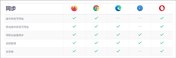 这里比较的移动浏览器几乎都支持移动设备和桌面设备间的完全同步。