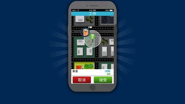 2、移动乘客赚钱。uber驱动游戏模拟器。