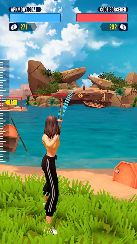 3、每次射箭都会保留上次一射箭角度数据,如果上一次距离太短,就可以把角度拉高一点,反之。