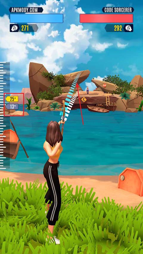 2、上下滑动屏幕,调整射箭角度。