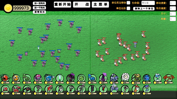 此外,植物大战僵尸模拟器游戏还有沙盒模式,在这个模式中你可以自由创造各种对抗阵营,通过在游戏中自由的放置各种类型的防御植物,抵御僵尸大军的入侵,打造更奇葩的战斗模式,感兴趣的话欢迎来下载试玩。