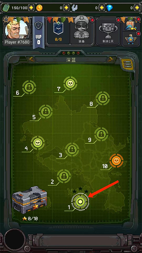 1、打开空军1945游戏,进入游戏界面,可看到不同的关卡,我们选择第一关,