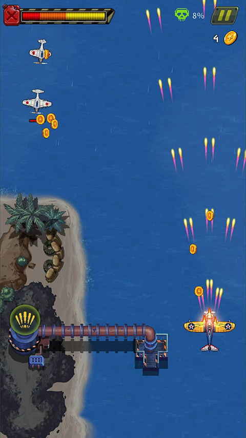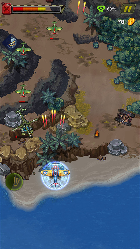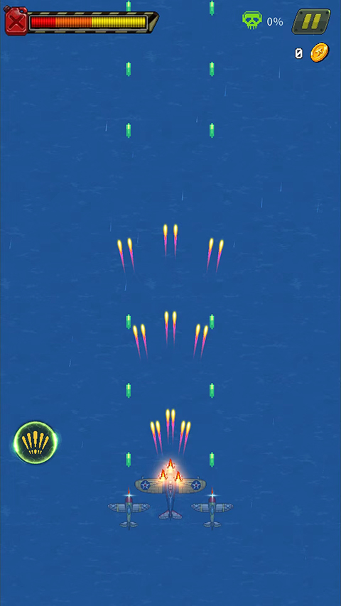 厌倦了太空射击和激光战役吗?试试飞行吧!体验前所未有竖版射击游戏。史诗级的空战充满刺激。选择你的战机,击退敌人,解救国家。空战的美妙和旋,英雄的伟大事迹都将让你终生难忘。