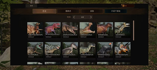 1、各种恐龙在这里完美还原,选择你喜欢的恐龙加入生存;