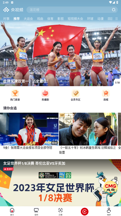 1、女足亚洲杯、CBA、NBA、五大联赛火热进行中!锁定央视频,让我们共同期待。