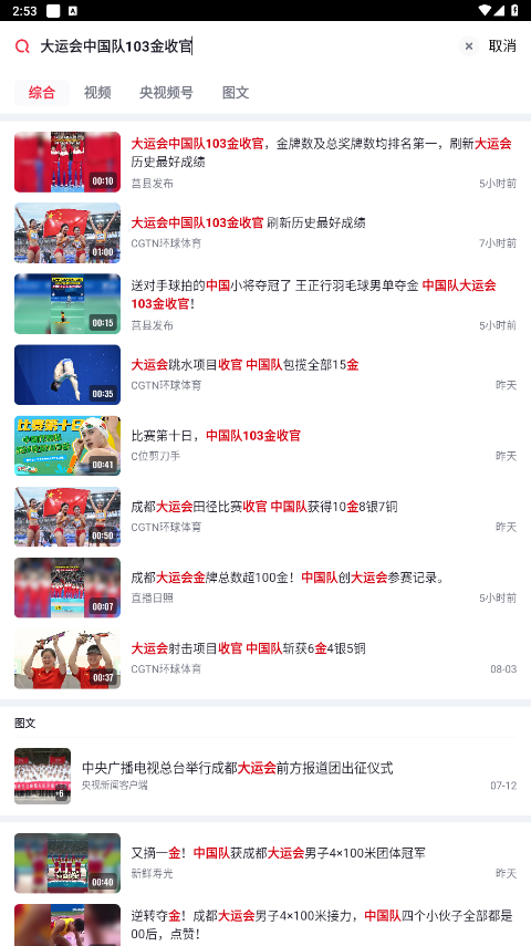 2、体育资讯,尽在掌握。央视体育专业的记者团队是我们最坚实的后盾,在这里您能了解翔实、权威的体育资讯,还能看到运动员场内场外独家精彩花絮。关注央视体育客户端,一手资讯尽在掌握。