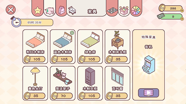 4、在游戏中有很多的材料可以选择,来装饰你自己的小屋,整个游戏充满了爱。