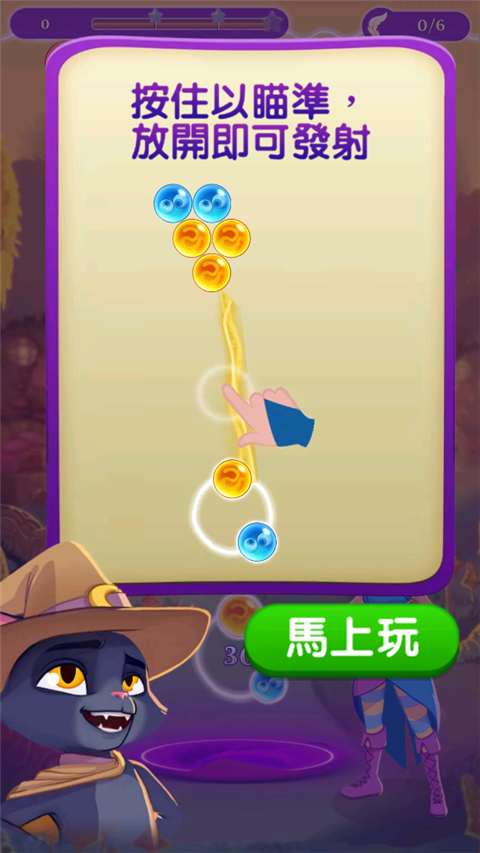 1、在这场魔法射击冒险中,消除3个泡泡让它们爆炸。