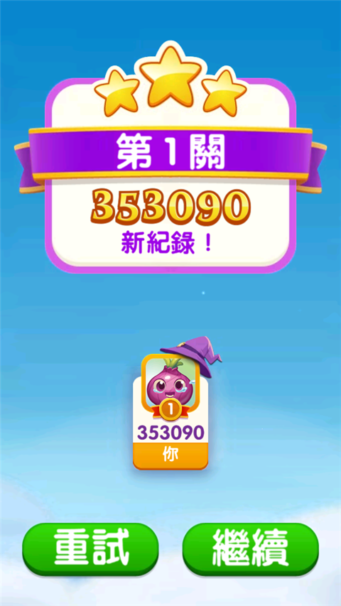 5、全部消除完成后,关卡目标也一并完成了,此时会获得大量分数奖励,在关卡结算界面还会显示玩家的最终得分,以及玩家间的排名情况。