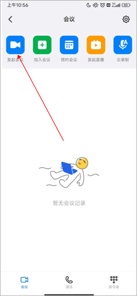 1、方式一:打开钉钉移动端App并登录>>点击右上方会议 图标选择会议栏>>进入发起会议。