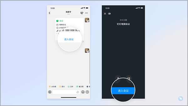 3、方式3:使用会议卡片加入会议:打开移动端APP>>在聊天窗口选择对方发送的会议卡片>>点击进入会议