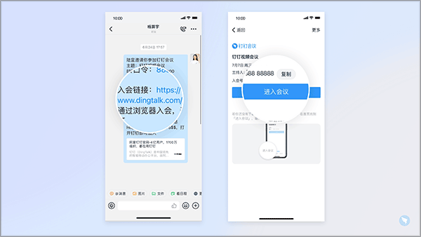 注:如果是在别的应用平台点击入会链接选择进入会议,会自动跳转至钉钉移动端App内并加入会议