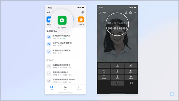 1、方式1:使用入会口令加入会议:打开钉钉移动端App>>点击右上角会议 图标>>点击加入会议>>输入入会口令加入会议