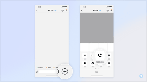 2、方式二:打开钉钉移动端App聊天窗口>>点击右下方加号 图标>>选择视频会议