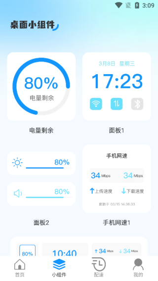 3、【桌面小组件】为用户提供了实用的桌面小组件,方便您快速访问关键信息。包括电量情况、手机网速、亮度和音量等功能。