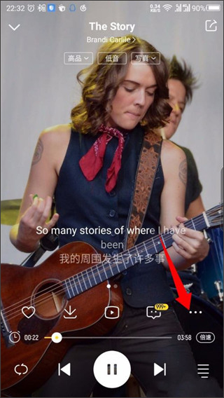 2、在播放界面中,点击靠近右下角的三个点。