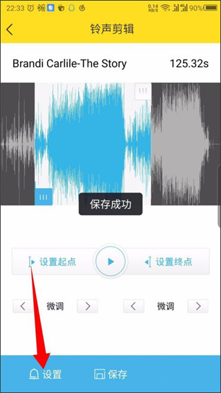 4、在打开的铃声编辑界面,可以剪辑铃声,点击底部的保存。