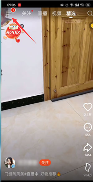 打开火山抖音火山版,点击左上角的三条横杆;