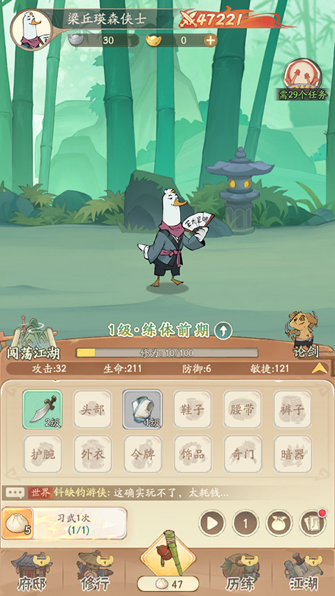 3、游戏内还可以通过提升习武等级来提高后续获得装备的品质。