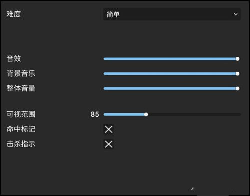 2、进入设置界面后,设置难度,音效,背景音乐,可视范围等参数