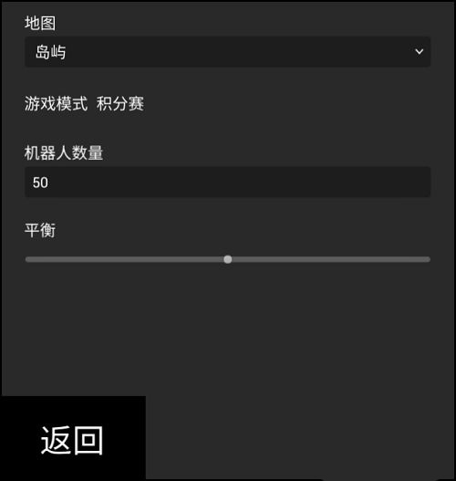 3、选择游戏地图,游戏模式为积分赛,机器人数量