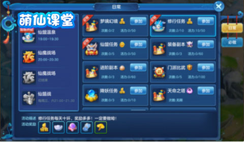 赠送鲜花.异性约会.帮派知识答题.抢夺众仙殿,丰富日常,好友互动不停!更有祈福大奖等你来砸。