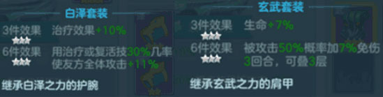 4、最后就是给女朋友配一套好看的衣服啦~再次推荐全体奶爸奶妈都适用的的白泽套,三件套可以提升19%的治疗效果,六件套还有几率提高20%攻击,当然也可以白泽三件套搭配玄武三件套增加点生命,做一个肉一点的奶妈。