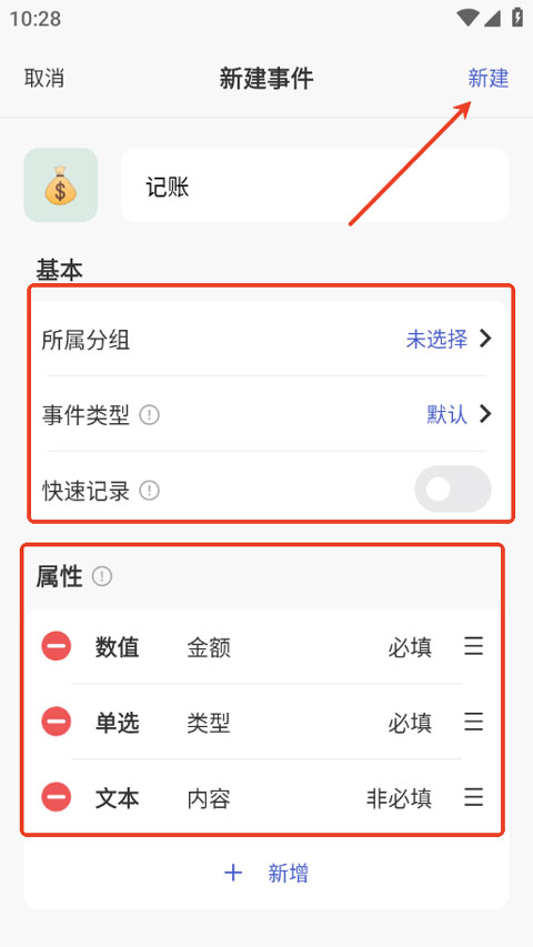 4、输入分组、记录的事情,之后点击新建即可;
