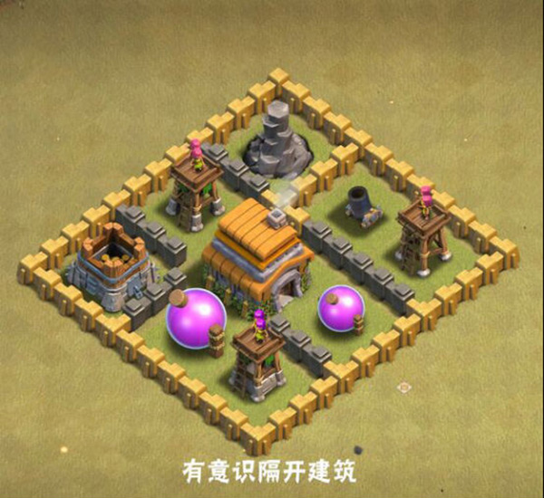 7、当城墙等级过低,没有理想的防御效果,那么就可以利用陷阱,开口引导阵型,以上就是Clash of Clans国际服布局阵型图解析了。