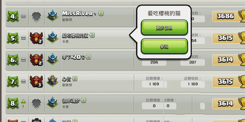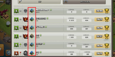 2、在部落中查看大本营等级和你相同的成员,