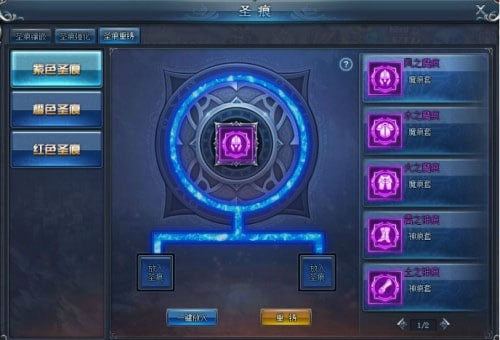 获得多余的紫色或以上品质的圣痕时,千万别急着分解!可在圣痕重铸界面消耗两个同品质圣痕重铸成一个特定部位的圣痕。