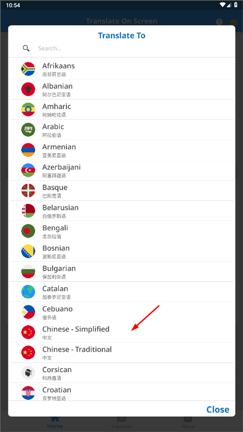 4、然后选择要翻译长的语言;
