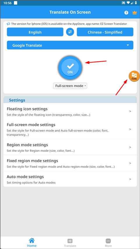 屏幕翻译app是一款功能强大的实时翻译工具,英文名叫Translate On Screen,作为一款全局翻译应用,在手机当中的任何界面你都能够点击进行翻译,强迫自己利用手机来阅读英语界面,对于英语学渣而言是一件非常困难的事情,而现在这款应用就会帮助到你。