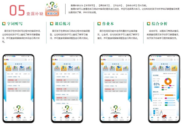 共分【字词听写】、【课后练习】、【作业本】、【综合分析】四大功能板块: