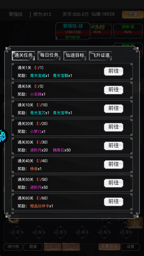2、放置成长,完成任务即可领奖,每日登录惊喜不断,各种稀有材料,等你畅游修真界。