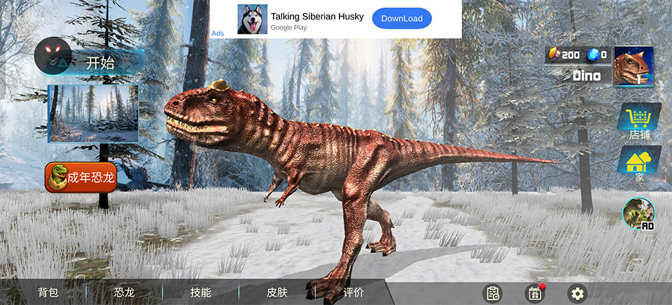 3、进入游戏内我们先来熟悉一下恐龙。