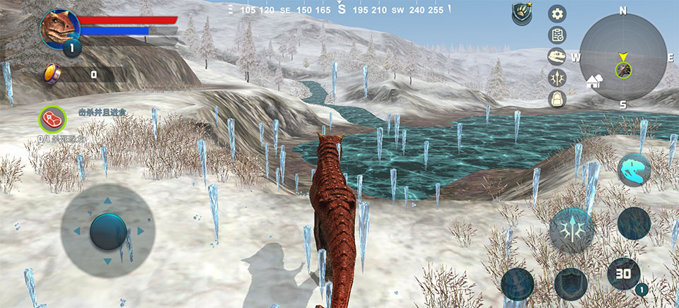 3、生存进化:管理饥渴、追踪猎物、策略狩猎,从幼体逐步成长为真正的恐龙霸主。
