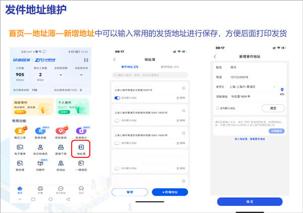 首页—地址薄—新增地址中可以输入常用带的发货地址进行保存,方便后面打印发货。