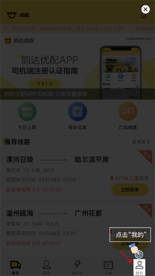 1、需要先选择司机角色进行登录,登录成功后点击【我的】模块。