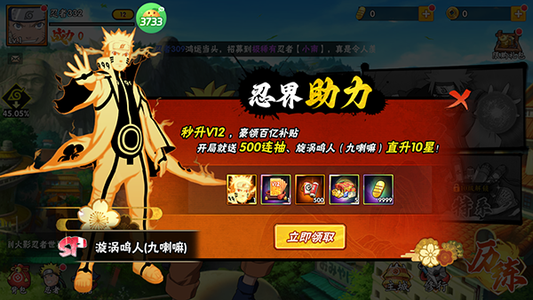 ★【创角福利】开局直升VIP12,500抽抽到手软!SP仙系忍者-漩涡鸣人(九喇嘛)助力闯关!