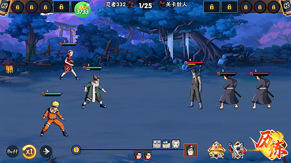 玩家可以自由收集热门忍者角色,每个角色不仅保留了熟悉的立绘设计,更能在战斗中释放出令人炫目的全屏大招。忍者角色丰富多样,涵盖水、火、雷、仙、禁等不同类型,同时拥有完善的图鉴系统,方便玩家查看与收集。