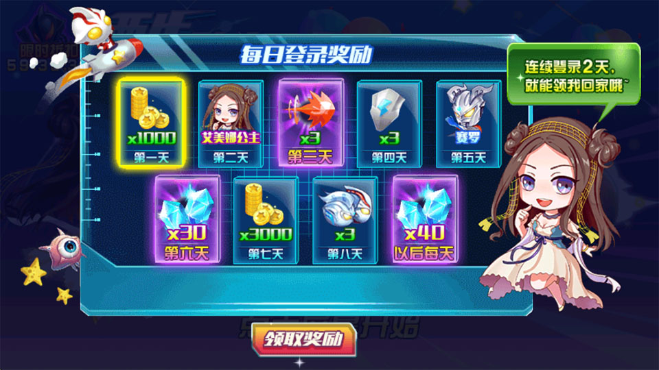 1、进入游戏内我们就可以领取每日登录奖励。