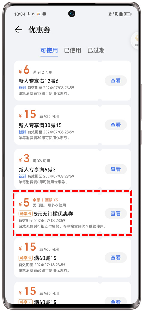 3、查看优惠券的方法