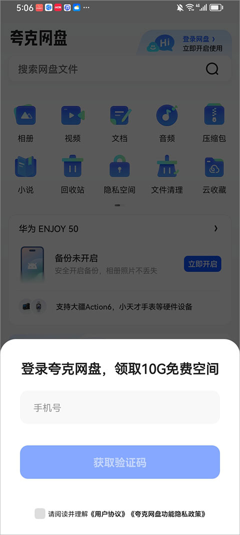 1、下载独立版的夸克网盘app,用户注册登录即可送10gb免费空间