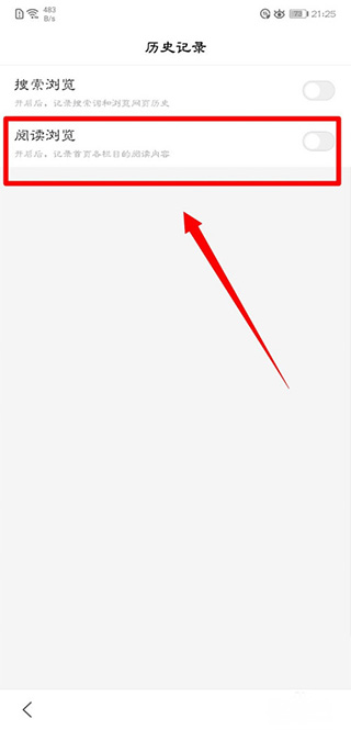 4、最后在切换的界面中点击阅读浏览就可以开启这个功能了。